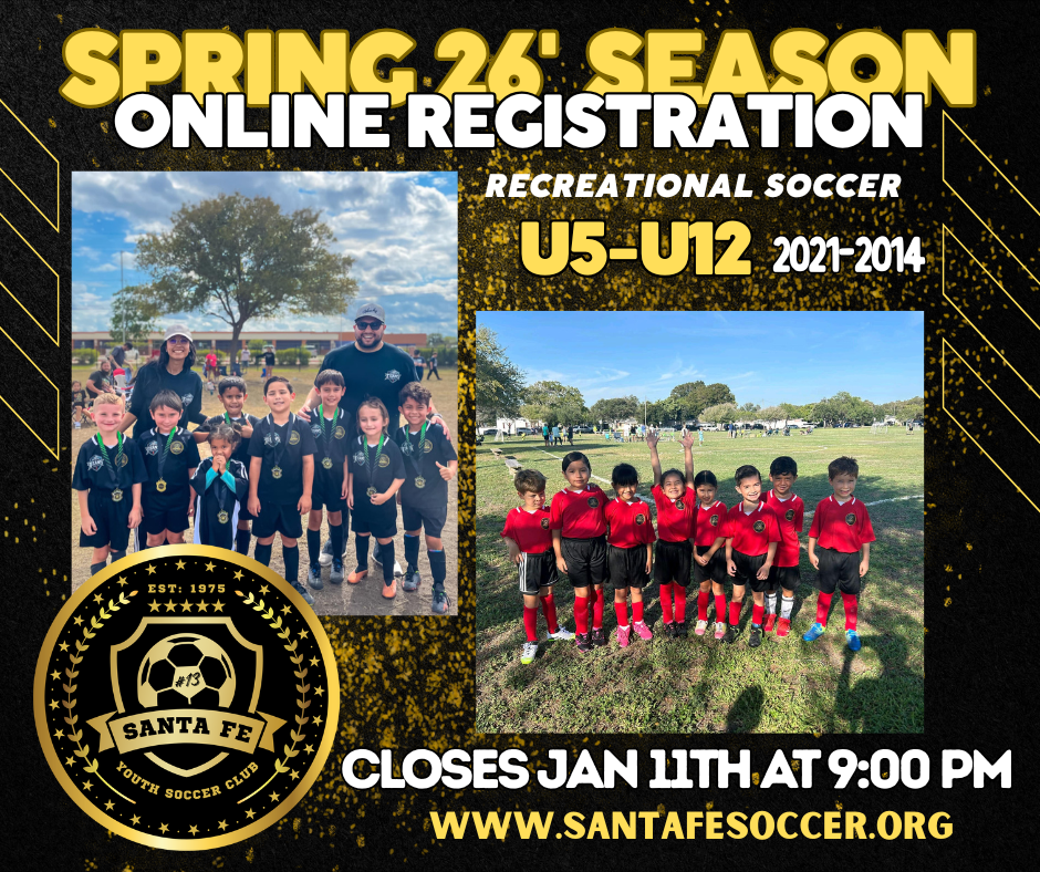 Registration for U5-U12 (2021-2014) recreational players is OPEN until 1/11 at 9:00 pm! Please visit our registration page for link and more info.